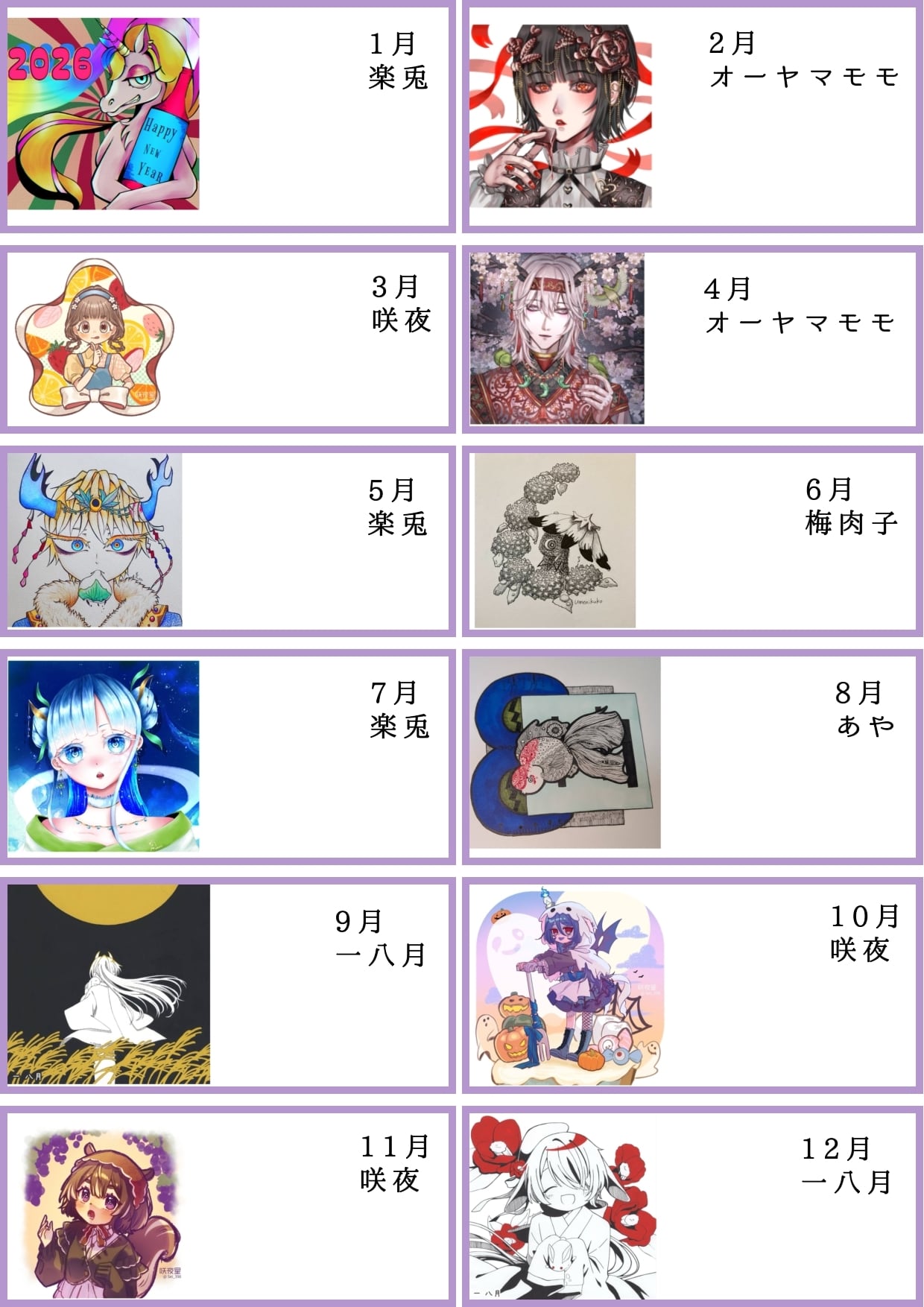 別々のイラストが12枚あるので、毎月違うイラストが楽しめます♪
